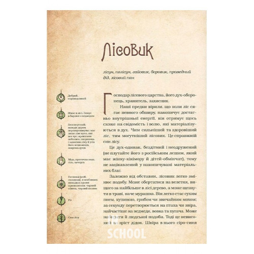 Чарівні істоти українського міфу Духи природи., Корній Дара 978-617-690-898-2 Ця книжка - чарівна. Ви не просто погортаєте її сторінки - ви поблукаєте стежками правічного лісу, почуєте його дихання, подивитесь в очі старенькому лісовикові, послухаєте чугайстрову сопілку. Може, вам щось прошепоче мавка або побалакає з вами поважний цар Ох... Ви постоїте біля річки - заскочите русалок за їхніми пустощами, а звідти недалеко й на гостину до суворих болотяника й болотяниці. А далі - прогулянка полем і луками, де вас зустрінуть і польовик, і спориш, і луговик... Та й вітри з повітрулями супроводжуватимуть вас під час мандрівки. І насамкінець свої таємниці відкриють духи пір року.Перед вами постане величезний і дуже цікавий шар культурної спадщини давніх українців, химерний світ чарівних істот праукраїнської міфології, досліджений і опрацьований Дарою Корній.