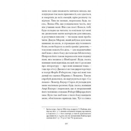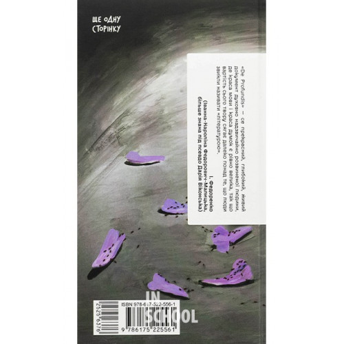 Видавництво "Ще одну сторінку" De Profundis. Послання: в ув'язненні та кайданах., Оскар Вайлд 978-617-522-556-1 «Настане день, коли правда має відкритися — можливо, не за мого життя... але я не готовий навічно лишитися при гротескному ганебному стовпі, до якого мене поставили», — пише Оскар Вайлд другові Роберту Россу, передаючи рукопис, який згодом стане знаним під назвою «De Profundis». Це величезне послання він написав у Редінзькій в’язниці, де відбував покарання за «любов, яка назватися не сміє».