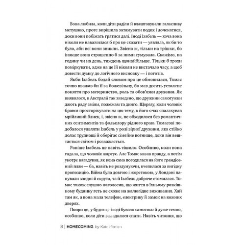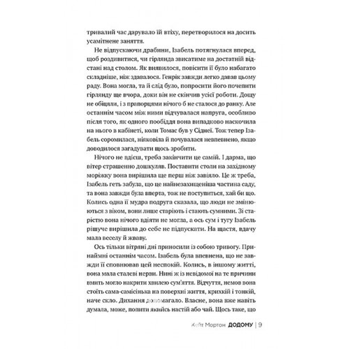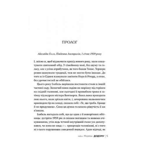 Рідна мова Додому., Кейт Мортон 978-617-8426-34-7 Аделаїда-Гіллз, Святвечір 1959 року. Однієї спекотної днини місцевий житель натрапляє на моторошне видовище біля струмка розкішного маєтку. Прибуває поліція, і містечко Тамбілла опиняється в центрі найзагадковішого розслідування в історії Південної Австралії.