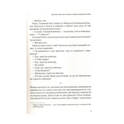 Фактор Черчилля. Як одна людина змінила історію., Борис Джонсон 978-966-942-796-0 Книжка Боріса Джонсона — це історія про те, як ексцентричний геній Черчилля, прем’єр-міністра Великої Британії, одного з найвизначніших лідерів ХХ століття, формував світову політику. Аналізуючи досягнення й помилки, а також міфи, які супроводжували цю видатну постать, Джонсон зобразив Черчилля як незрівнянного стратега, людину надзвичайно сміливу, красномовну й глибоко гуманну. Безстрашний на полі бою, один із найкращих ораторів усіх часів, лауреат Нобелівської премії з літератури, Вінстон Черчилль спростував думку, що історія — це місце дії великих знеособлених сил.Життя цього чоловіка є доказом того, що одна людина — відважна, геніальна, визначна — може впливати на світовий лад