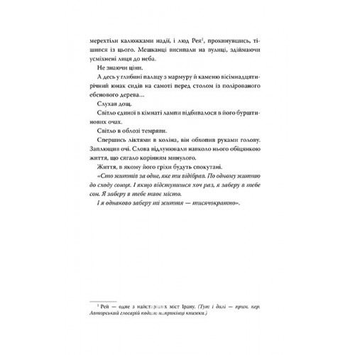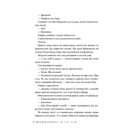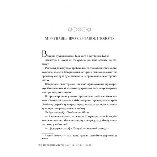 Рідна мова Гнів і світанок. Цикл Гнів і світанок. Книга 1., Рене Ахдіє 978-617-8426-73-6 У країні, де править убивця, кожен світанок приносить страждання. Халід, юний халіф Хорасану, — справжній монстр. Щоночі він забирає нову наречену, щоб на ранок обмотати їй горло шовковим шнурком. Коли жертвою хлопчика-царя стає найкраща подруга Шахразади, дівчина присягається помститися та зголошується стати наступною нареченою. Вона сповнена рішучості не лише вижити, а й покласти край терору халіфа. Ніч за ніччю вона зваблює Халіда чарівними історіями, щоб вижити, хоча знає, що кожен світанок може бути останнім. Та стається неочікуване: Халід виявляється не таким, яким його уявляють. Цей монстр — просто хлопчик зі зболеним серцем. Шахразада відчуває, що закохується. Це неможливо! І це непростима зрада. Проте дівчина розуміє, що в цьому мармуровому палаці все не таке, яким здається. Тож вирішує розкрити всі таємниці та, попри своє кохання, забрати життя Халіда як відплату за безліч згублених доль. Чи виживе їхнє кохання у світі інтриг і таємниць?