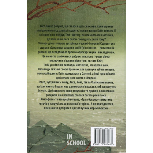 Рідна мова Гра в брехню., Рут Веа 978-617-8280-46-8 Айса Вайлд розуміє, що сталося щось жахливе, коли отримує повідомлення від давньої подруги. Інакше навіщо Кейт кликати її та інших двох подруг, Тею та Фатіму, до приморського містечка, де вони навчалися разом сімнадцять років тому?