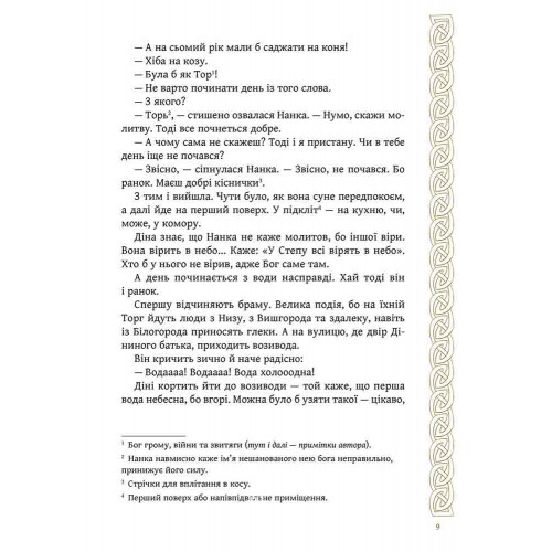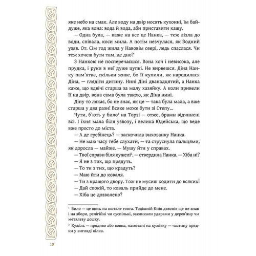 Київ. Звір для Діни, Олексій Гедеонов 978-617-8387-23-5 Влітку 2017 року, під час розкопок на київському Подолі, археологи виявили свинцеві форми для виготовлення «ніби справжніх візантійських золотих монет». Хто виготовив їх майже тисячоліття тому? Для кого? Ця книжка — спроба знайти відповідь і відтворити давню детективну сторінку з життя княжого Києва. Побачимо тут знаних персон — князя Ярослава Мудрого, княгиню Інгігерду, князівну Елісів, її нареченого Гаральда Суворого та багатьох інших, менш відомих. Але головною героїнею оповіді стане киянка Діна — юна й водночас старша за Софію Київську донька воїна і племінниця ювеліра. Разом із Діною ми пройдемо чимало пригод — небезпечних і цікавих, побачимо дива і повсякдення минулого часу і, певно, зануримося в історію. Адже вона завжди поруч.