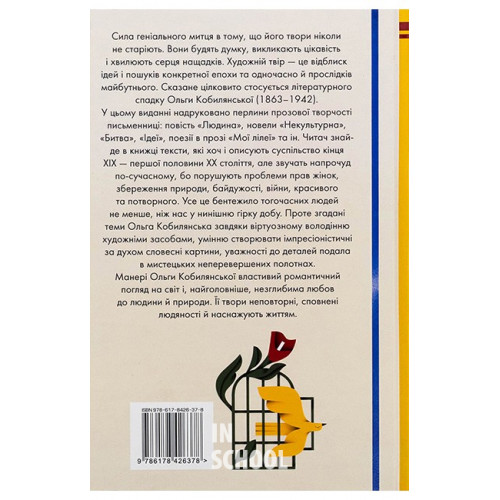 Рідна мова Людина. Вибрані твори., Ольга Кобилянська 978-617-8426-37-8 У цьому виданні надруковано перлини прозової творчості письменниці: повість «Людина», новели «Некультурна», «Битва», «Ідеї», поезії в прозі «Мої лілеї» та ін. Читач знайде в книжці тексти, які хоч і описують суспільство кінця ХІХ — першої половини ХХ століття, але звучать напрочуд по-сучасному, бо порушують проблеми прав жінок, збереження природи, байдужості, війни, красивого та потворного. Усе це бентежило тогочасних людей не менше, ніж нас у нинішню гірку добу. Проте згадані теми Ольга Кобилянська завдяки віртуозному володінню художніми засобами, умінню створювати імпресіоністичні за духом словесні картини, уважності до деталей подала в мистецьких неперевершених полотнах. Манері Ольги Кобилянської властивий романтичний погляд на світ і, найголовніше, незглибима любов до людини й природи. Її твори неповторні, сповнені людяності й наснажують життям.