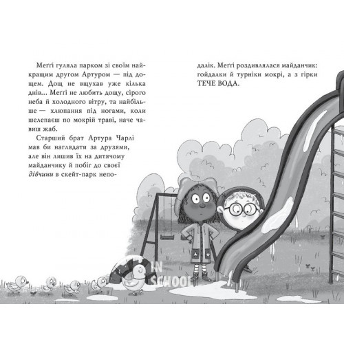 Однак мама записала Меґґі до басейну, і що ж їй тепер робити? Добре, що Меґґі чаклунка. Кмітлива й талановита відьмочка знає, як потрапити до найкращої «АКУЛЯЧОЇ» групи із плавання і, звісно ж, допомогти своєму другові Артуру.