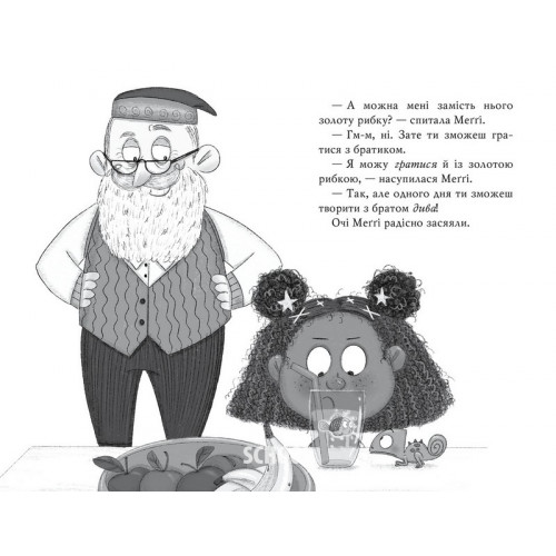 Добре, що Меґґі чаклунка. Дуже кмітлива й талановита чаклунка… яка іноді помиляється в замовляннях. Та хіба це завадить їй повернути увагу батьків, яку поглинуло МАЛЕ ЧУДОВИСЬКО? Адже Меґґі не сама, їй допомагає вірний друг — улюбленець-хамелеон.