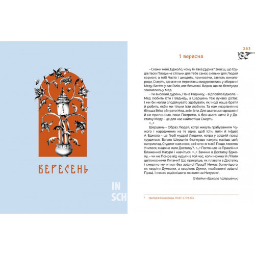 А-ба-ба-га-ла-ма-га Місяцеслов за Сковородою 978-617-585-281-1 «Місяцеслов за Сковородою» – це вибрані й упорядковані (за світським і новим церковним календарями) фрагменти з переважної більшості творів найвідомішого українського філософа. Добірку задумано і скомпоновано так, аби книжкою було зручно й приємно користуватися для щоденного читання Григорія Сковороди, поступового занурення й залюблення у світ його мислення, несподіваних чарівливих образів і незрідка парадоксальних іронічних висновків. А якщо вам сподобається мати у своїй бібліотечці цю книжку і ваша рука потягнеться по твори Сковороди у повнішому обсязі, тоді буде виконано і завдання-максимум нашого «Місяцеслова...»