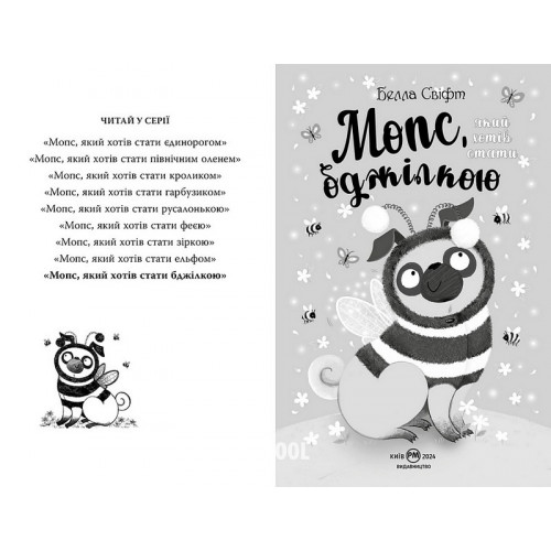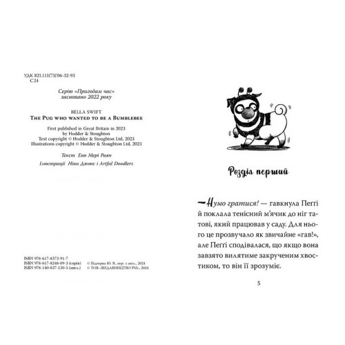 Рідна мова Мопс, який хотів стати бджілкою Книга 9., Белла Свіфт 978-617-8373-91-7 Родина Пеґґі вирішила завести бджіл! Хазяйка мопсика, Хлоя, хоче створити про них проєкт для наукового ярмарку. Але дівчатка з команди Хлої ніяк не можуть дійти згоди — кожна з них прагне бути головною! Пеґґі має показати їм, що значно цікавіше працювати разом.