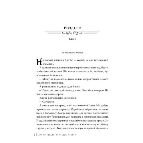 Рідна мова Обітниця злодіїв. Цикл «Танець злодіїв» № 2., Мері І. Пірсон 978-617-8426-71-2 Казі та Джейс не лише вижили, а й пройшли випробування, що зробили їх іще сильнішими, достоту як і їхнє кохання. Тепер на них чекає нове життя: Белленджери більше не будуть беззаконниками, Торів Дозір стане королівством, а Казі та Джейс нарешті долатимуть усі труднощі пліч-о-пліч.