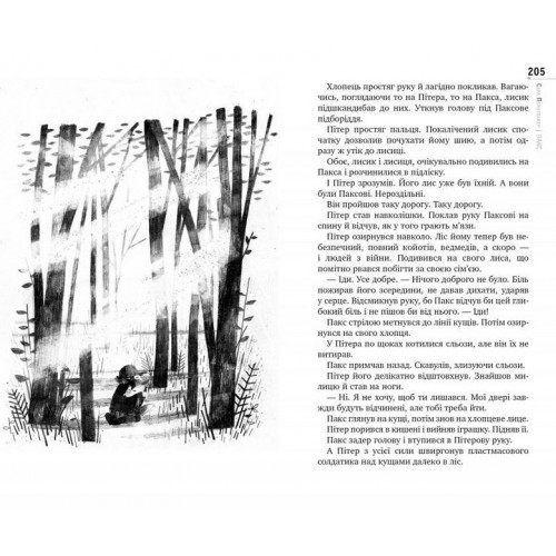 Рідна мова Пакс., Сара Пэннипакер 978-617-8248-68-0 Пітер і Пакс, хлопчик і його лис, допомагають один одному пережити горе, яке в кожного своє Двоє, але не двоє Пронизливо щира повість про правду і брехню, про безглуздість війни, про вразливість природи, про вірність собі і відданість другові, про вміння співчувати.