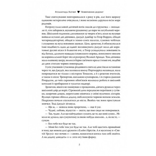 «Повернення додому» Розамунди Пілчер — це блискучий роман, яскраво виписані персонажі якого зачаровують, а їхні дивовижні долі нікого не залишають байдужими. Книжка, яку хочеться смакувати, перечитувати і зберегти назавжди…
