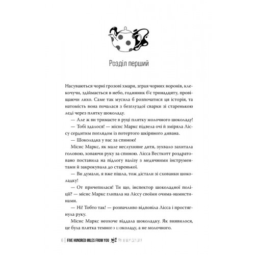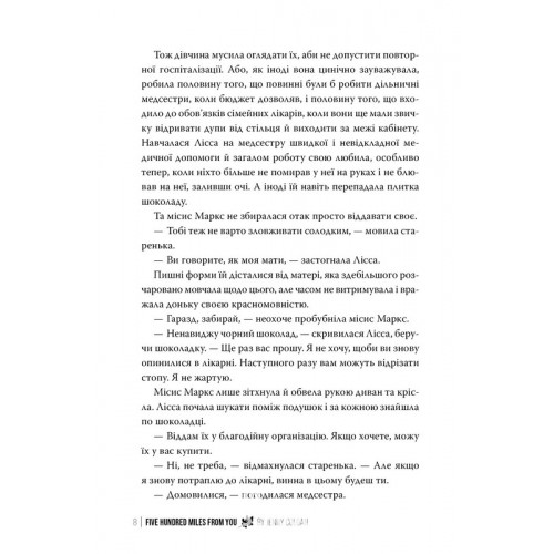 Кормак нещодавно звільнився з армії та працює фельдшером у Кіррінфіфі, куди невдовзі прибуде й Лісса. Однак і тут йому не вдається віднайти спокій. А що, як три місяці в Лондоні — саме те, що йому потрібно? Лісса і Кормак призвичаюються до нового життя й розповідають про це одне одному в електронних листах. Схоже, нарешті все налагоджується. Хоча їм здається, наче чогось бракує. Чи когось? Що, як до щастя п’ятсот миль?