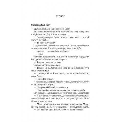 Що знає вітер., Емі Гармон 978-617-17-0056-7 Енн Ґаллагер виросла на розповідях свого дідуся про Ірландію. Після його смерті вона вирушає на батьківщину покійного, щоб розвіяти прах над озером біля маєтку. Енн потрапляє в грозу, і якась таємнича сила відкидає її на вісімдесят років назад — в Ірландію 1921 року. У країні саме точиться громадянська війна. Дівчину рятує, а відтак допомагає їй пристосуватися до геть іншої історичної епохи доктор Томас Сміт. Разом вони долучаються до боротьби за незалежність Ірландії. Енн закохується у свого рятівника. Та чи готова вона відпустити колишнє життя заради кохання, якого вже й не сподівалася спізнати? І чи цей вибір справді за нею?