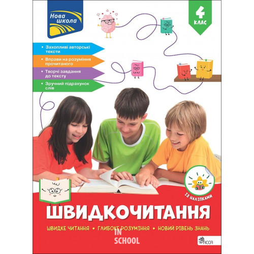 Швидкочитання. 4 клас 978-617-8387-85-3 Посібник створено для учнів 4 класу, які прагнуть удосконалити навички швидкого і свідомого читання. Поступове ускладнення оригінальних текстів сприяє підвищенню темпу читання, розвитку артикуляції та розширенню зорового сприймання. Завдання на глибоке розуміння прочитаного, аналіз змісту, встановлення логічних зв’язків і виявлення прихованих сенсів допомагають сформувати у дитини навички критичного мислення. Творчі вправи мотивують до фантазування, переосмислення тексту та мовленнєвого розвитку. Посібник стане надійним помічником як для самостійного нав­чання, так і для роботи вчителя на уроці.