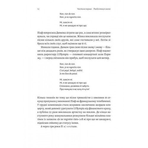 Наповнена справжніми історіями людей, структурована і доступно написана, книжка «Сила жалю» змусить вас подивитися на жаль як на щось, що не просто додає нам людяності, але й робить кращими. Та найголовніше — показує, як оглядаючись назад, ми можемо рухатися вперед.