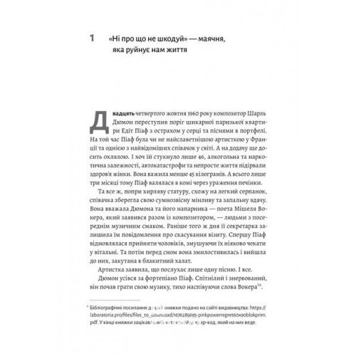 Видавництво "Лабораторія" Сила жалю. Як погляд назад рухає нас вперед., Деніел Пінк 978-617-8203-88-7 Усі ми про щось шкодуємо. Але це не погано чи добре. Це абсолютно нормальна частина людського буття. Та розуміння того, як працює жаль, може допомогти нам приймати кращі рішення, наповнитися енергією і додати своєму життю глибокого сенсу.