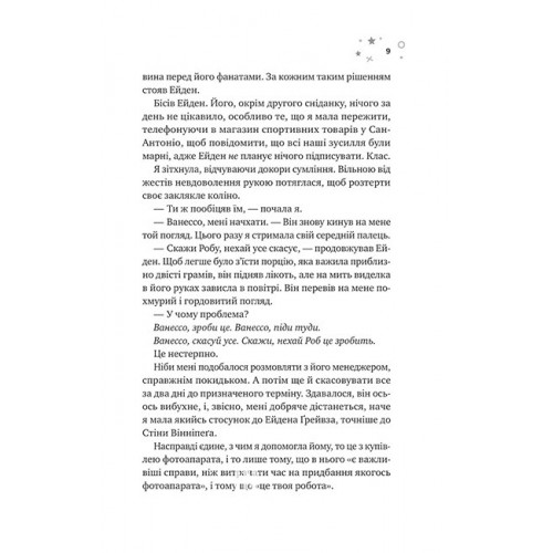 Стіна Вінніпеґа і Я., Маріана Запата 978-617-17-0885-3 Ванесса Мазур завжди знала, що не буде вічно асистенткою величезного й холодного футболіста Ейдена Ґрейвза. І вона не має картати себе за власне звільнення. Годі бути помічницею, куховаркою, хрещеною матір’ю та нянькою найкращому захисникові Національної футбольної організації. У неї є плани на життя, й у жодному з них немає пункту про довічне прання гігантської білизни. Та коли Ванесса нарешті вирішує піти, футболіст на прізвисько Стіна Вінніпеґа з’являється на порозі її будинку з пропозицією, яку важко відкинути. Він потребує її для порятунку кар’єри, і це виходить далеко за межі професійної допомоги. Ванесса приголомшена: два роки Ейден не міг знайти в собі сили побажати їй доброго ранку чи привітати з днем народження, а тепер просить повернутися? Тисячі людей його обожнюють, але з неї досить. Однак що сказати людині, яка звикла отримувати все, що забажає?