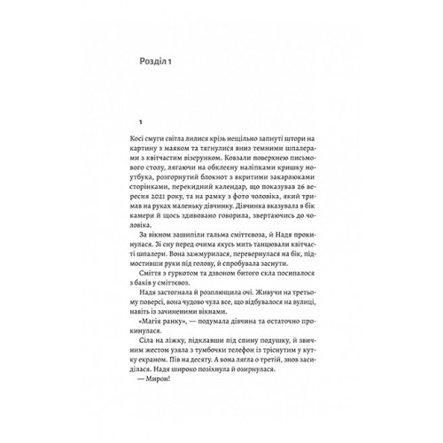 Видавництво "Лабораторія" Там, де живуть книжки., Віталій Дуленко 978-617-8401-91-7 Книжки завжди були її прихистком. Але тепер, коли коронавірус відрізав Надю Книжицьку від світу, а улюблений блог став тягарем, навіть вони не рятують від самотності. Та все змінюється, коли їй до рук потрапляє загадкова книжка – історія від невідомого автора, що детально описує її особисте життя. Спершу це виглядає як злий жарт, але з кожною сторінкою відчуття страху посилюється: цей автор знає те, чого не міг знати ніхто?