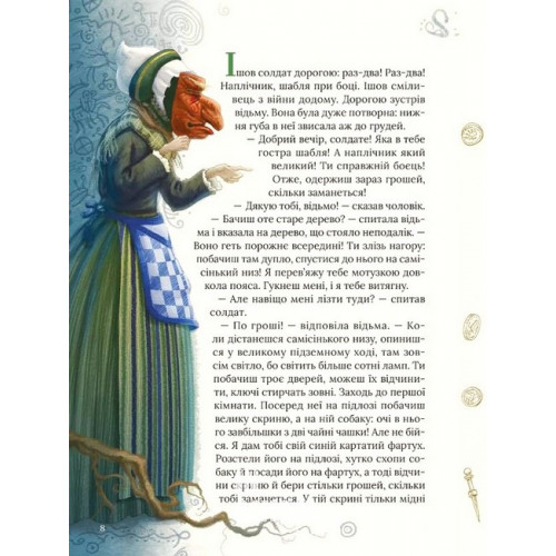 Улюблені казки Андерсена., Ганс Крістіан Андерсен 978-966-982-296-3 Чи готові ви, любі маленькі читачі, до подорожі країною захопливих фантазій та незабутніх пригод? Тоді мерщій розгортайте цю яскраву книжку, ілюстровану фантастичними малюнками відомого українського художника Інокентія Коршунова.Тут хоробрий солдат отримує від старої відьми чарівне кресало. І тепер може здійснити будь-яке своє бажання, викликавши на службу трійко могутніх псів. Олов’яний солдатик прокидається вночі, щоб прожити іграшкове життя, сповнене аж ніяк не іграшкових випробувань, і знайти кохання. Король, обираючи нове вбрання, дізнається, що у його королівстві не лишилося чесних людей, і лише дитина здатна казати правду. Хоробра принцеса Еліза намагається будь-що порятувати одинадцятьох братів від закляття лихої мачухи, що обернула їх на лебедів. А принц у пошуках любові стає cвинопасом…Чарівна країна казок Ганса Крістіана Андерсена відчиняє свою браму!