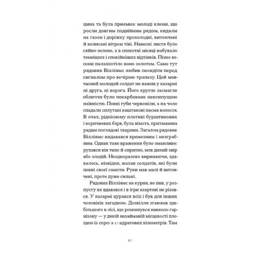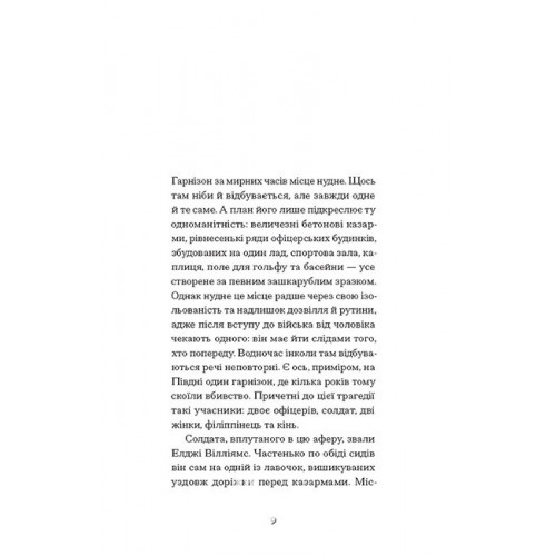 Видавництво "Ще одну сторінку" Відблиски в золотому оці., Карсон Маккалерс 978-617-5225-62-2 У маленькому військовому містечку, десь серед лісів американського Півдня 1930-х років вибудовується багатокутник взаємин між службовцями. Перед нами постає гарнізонне життя двох родин — капітана Пендертона і його дружини Леонори, кокетки і вправної наїздниці, та майора Ленґдона і його тендітної дружини Елісон — і як повсякденну рутину їхнього життя змінив своєю з’явою рядовик Вілліямс. Кожен із героїв відкриває в собі або для себе щось незнане — те, що досі було забороненим і стигматизованим, а тепер відкривається як тайна.
