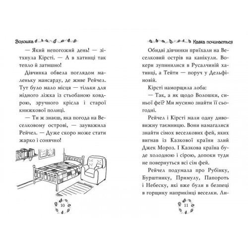 Рідна мова Волошка, синя фея. Книга 6., Дейзі Медовз 978-966-917-800-8 Рейчел і Кірсті разом зі своїми батьками відпочивають на Веселковому острові. І саме тут вони дізнаються про Казкову країну, в якій через закляття Джека Мороза зникли яскраві кольори. Щоб урятувати магічну країну, подружки мають відшукати сімох веселкових фей.