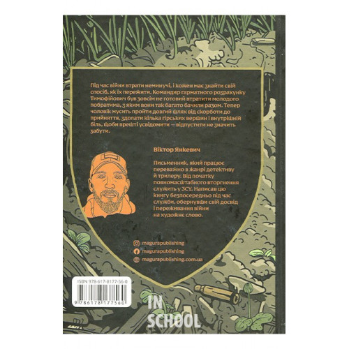 Маґура Я не забуду., Віктор Янкевич 978-617-8177-56-0 Під час війни втрати неминучі, і кожен має знайти свій спосіб, як їх пережити. Командир гарматного розрахунку Тимофійович був зовсім не готовий втратити молодого побратима, з яким вони так багато бачили разом.