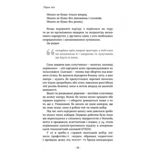 Авторка цієї книжки переконана: якщо доводиться чимось жертвувати, значить, щось точно іде не так. Тетяні вдалося побудувати успішну кар’єру керівниці міжнародної компанії. Крім того, вона викладає, виховує двох доньок, заснувала книжковий клуб. Її робота не зупиняється після офіційного закінчення робочого дня, водночас Тетяна ніколи не «вимикає» дім, коли на роботі.