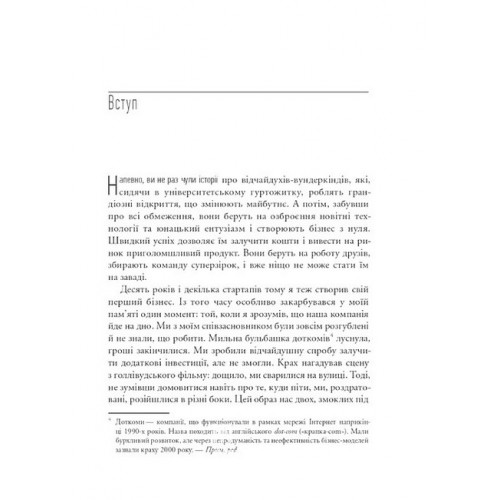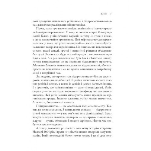 Як постійні інновації створюють радикально успішний бізнес. THE LEAN STARTUP., Ерік Ріс 978-617-17-1353-6 Настав час припинити марнувати свій і чужий час та почати змінювати світ на краще, зокрема й у галузі бізнес-технологій. Саме завдяки книжці The Lean Startup навчитися створювати власний прибутковий бізнес зможе кожен. Безумовно, читачі неабияк надихнуться концепцією Еріка Ріса — успішного підприємця, викладача Гарвардської школи бізнесу, консультанта з розвитку стартапів.