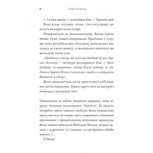 Це - найбільш автобіографічна книга Софі Кінселли, знаної своїм блискучим легким стилем і дотепними історіями про абсолютно різних жінок. Але тут вона зовсім інша: щира, вразлива, глибока. Вона змінює імена, переставляє факти, але залишає найголовніше - відвертість, яка нікого не залишить байдужим.