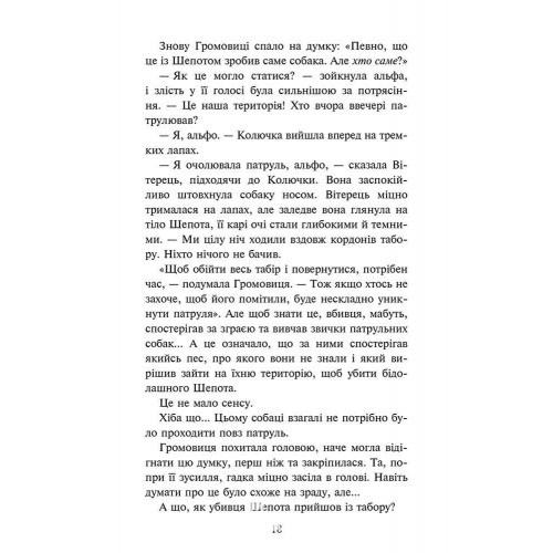 Зграя. Затемнення. Книга 2. Глуха ніч, Ерін Гантер 978-617-8387-57-0 Друга книга другого циклу «Затемнення» всесвітньовідомої серії «Зграя».Після жорстокого вбивства Шепота у дикій зграї знов оселилася ворожнеча. Усі переконані, що це лисиці так жахливо помстилися за мертве лисеня… Утім Громовиця переконана, що такі рани міг нанести лише інший собака. Щасливець та решта зграйників не вірять у зраду. Проте молода лютопсиця сповнена рішучості подивитися правді в очі і знайти відповідь на запитання: хто зрадник і чи не дотична до цього її власна пітьма?